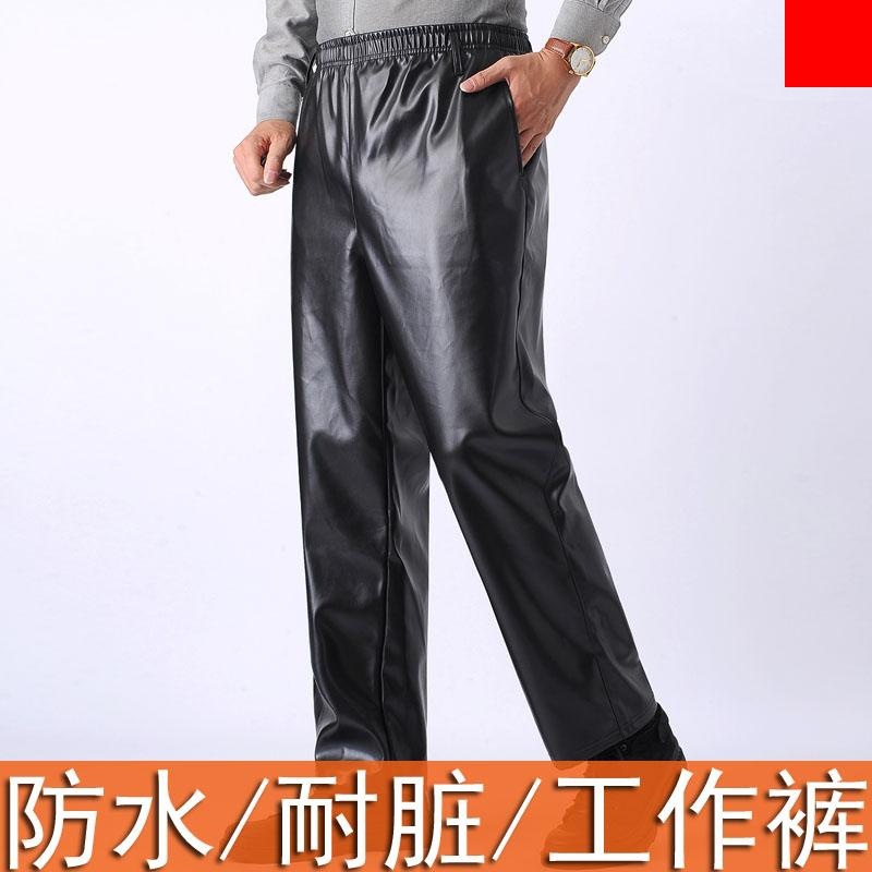 春夏薄款男皮裤防油防水工作裤中老年高腰宽...